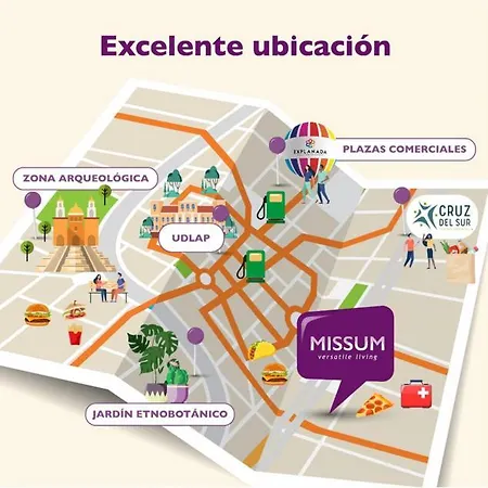 El Missum Versatile Living Cholula tiene patio y está situado a 3 km del Museo Regional de Cholula. Los huéspedes disfrutarán del Wi-Fi y los que tengan coche apreciarán el aparcamiento privado gratuito en las instalaciones.